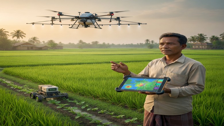 লাঙল থেকে ল্যাপটপে: ২০২৬ সালে ড্রোন আর রোবটের দখলে বাংলার কৃষি