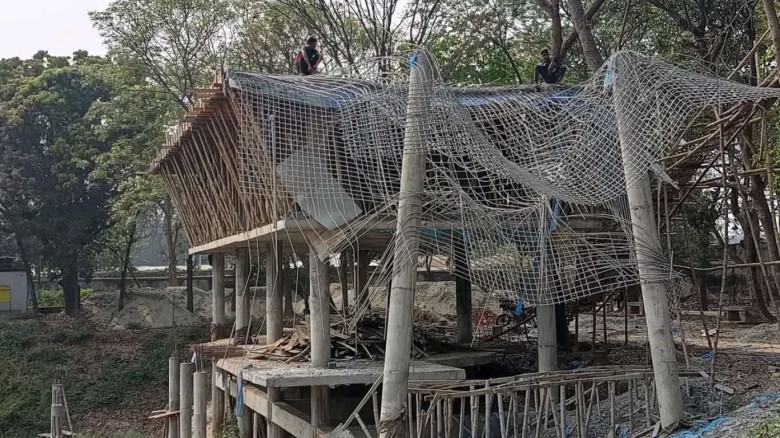 উদ্বোধনের আগেই ধসে পড়ল বগুড়া পৌর পার্কের জিম ভবনের ছাদ